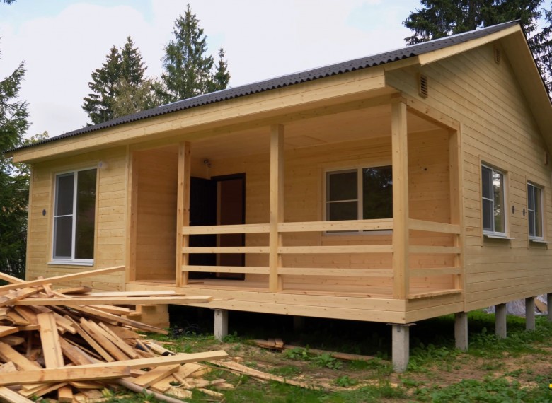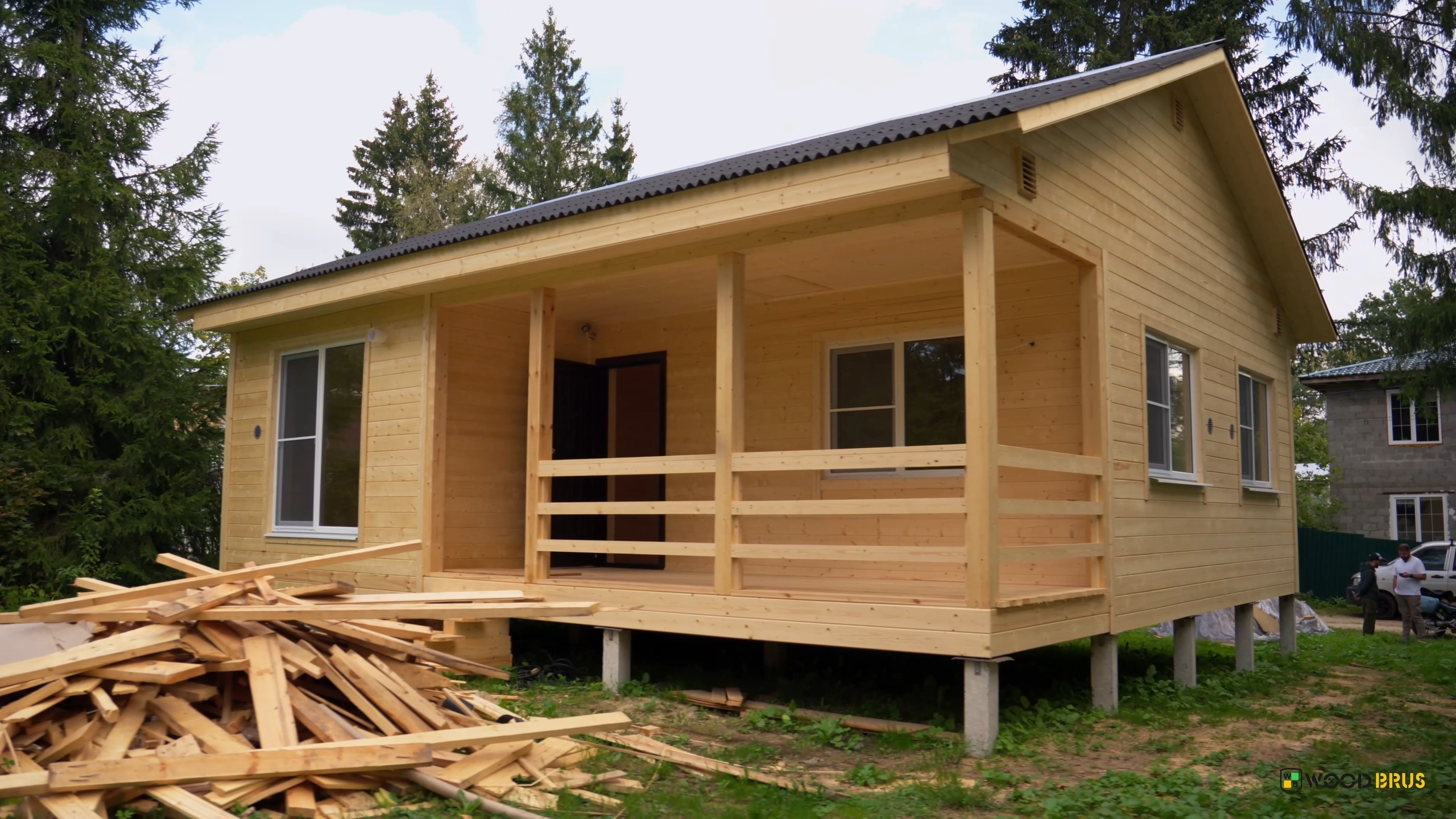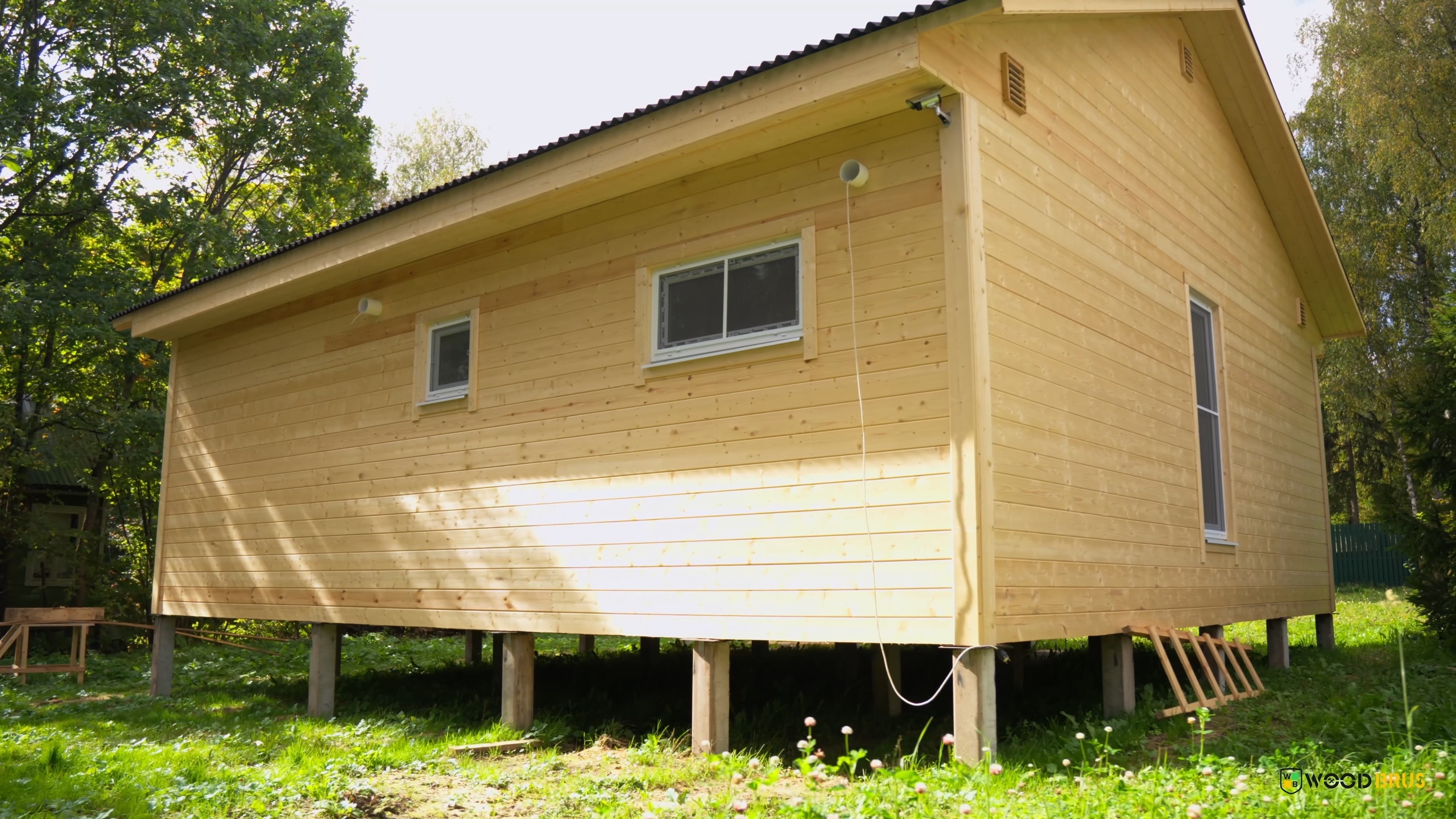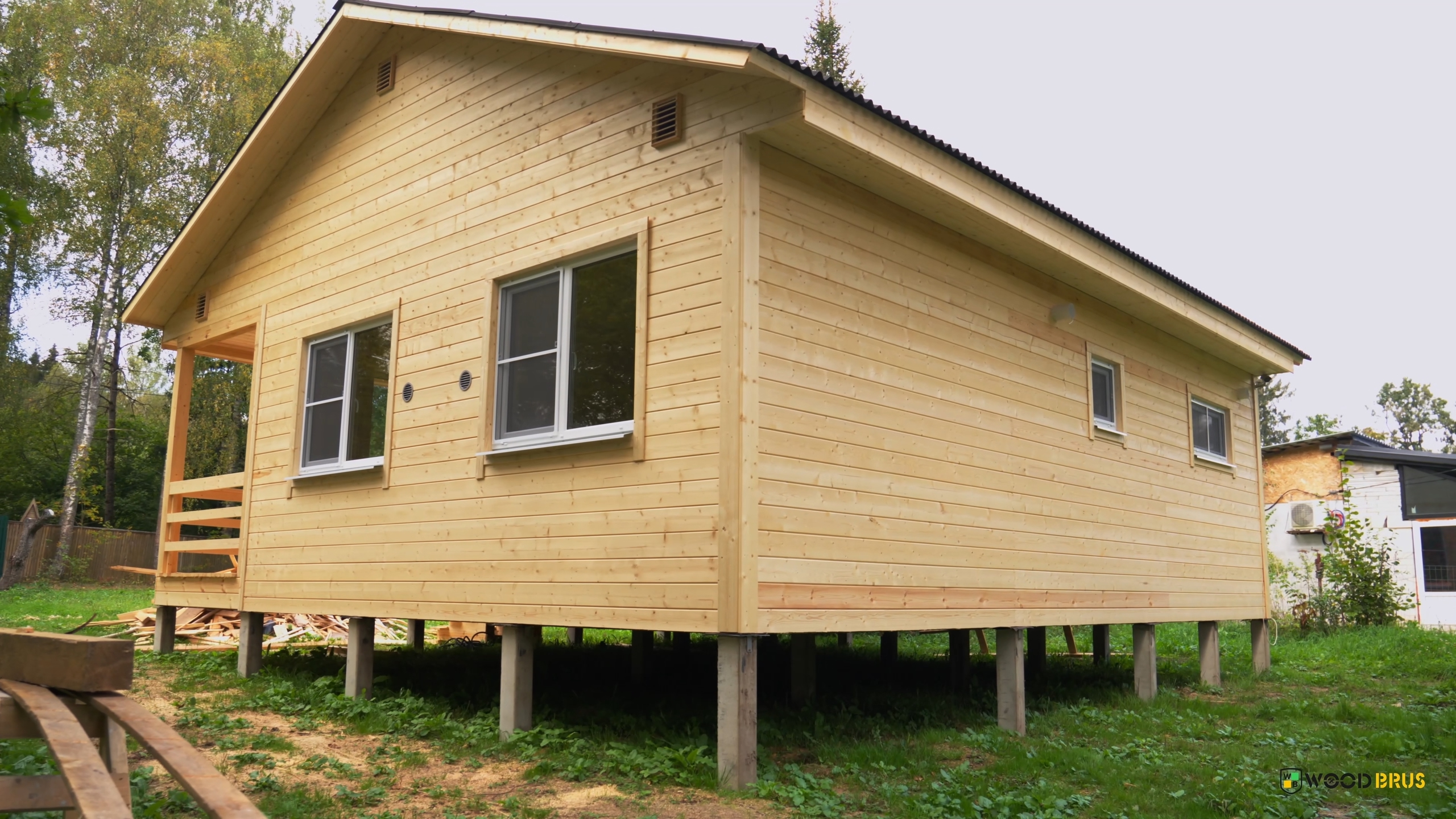 Утепление: стены плитным «Rockwool» в 150 мм, перегородки плитным «Rockwool» в 100 мм, полы и потолок рулонной «Тисма» в 150 мм. Вся обшивка имитацией бруса. На полах прикручивается шпунтованная доска, поверх фанера 10 мм.Окна ПВХ (двухкамерные с водоотливами и москитными сетками), кровля ондулин (ral 7024 - цвет серый графит), свесы крыши 45 см. Фундамент: ж/б сваи. Комплектация: «под ключ». Цена: 2 048 000 рублей.