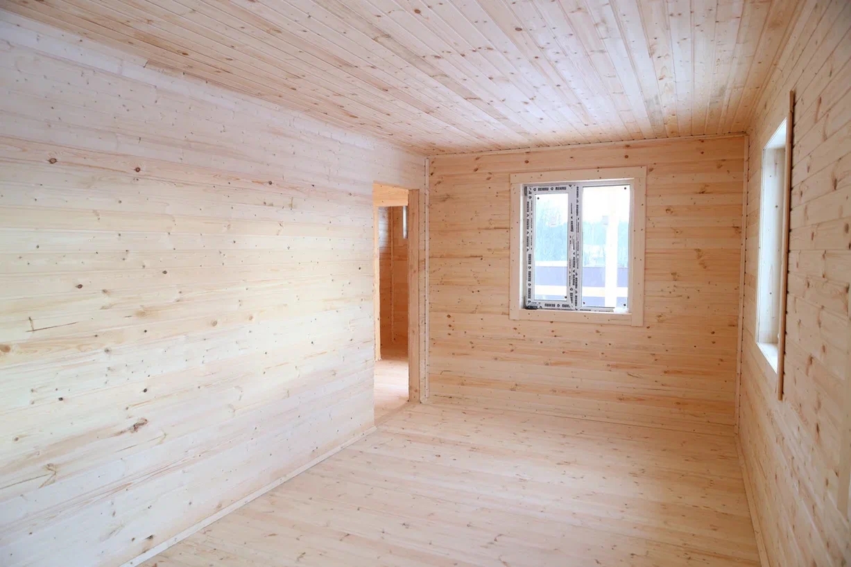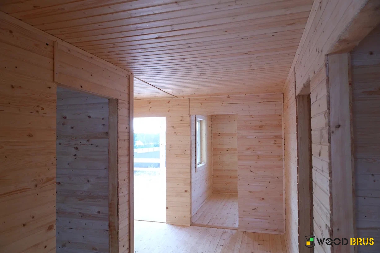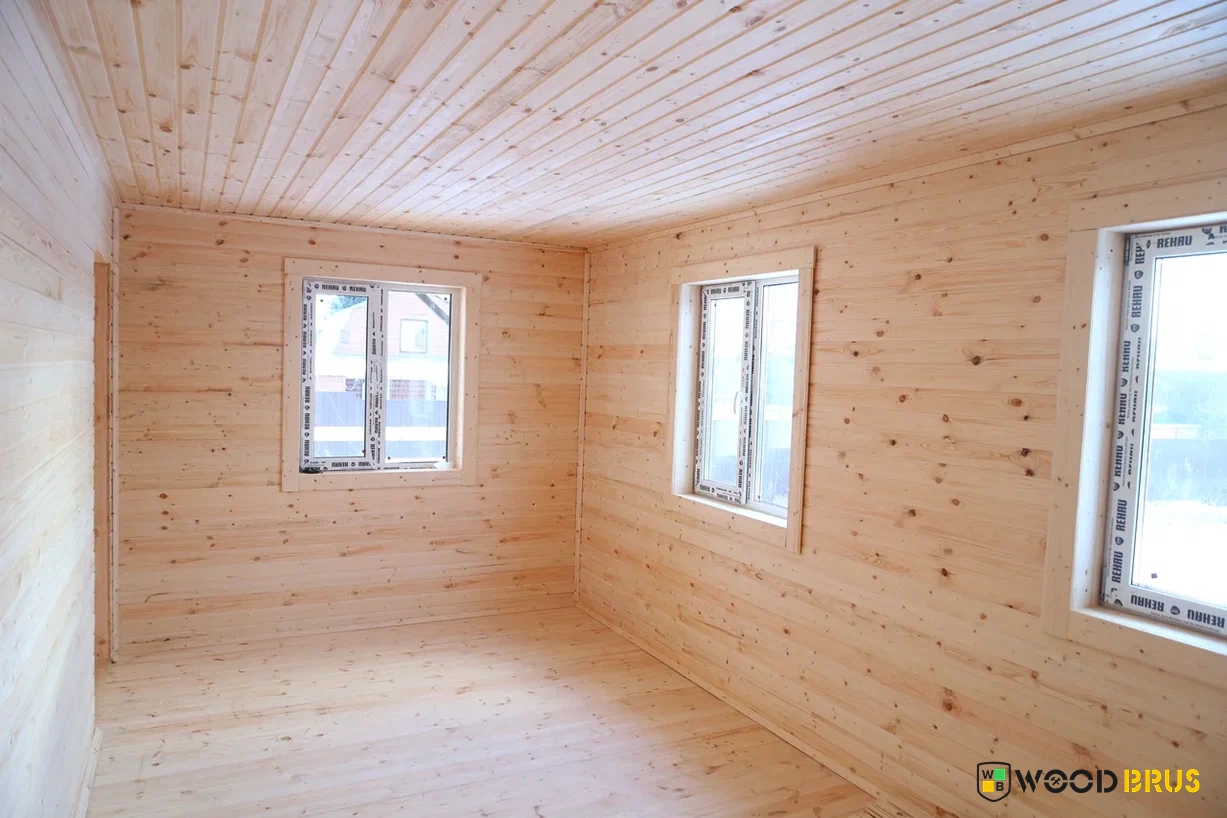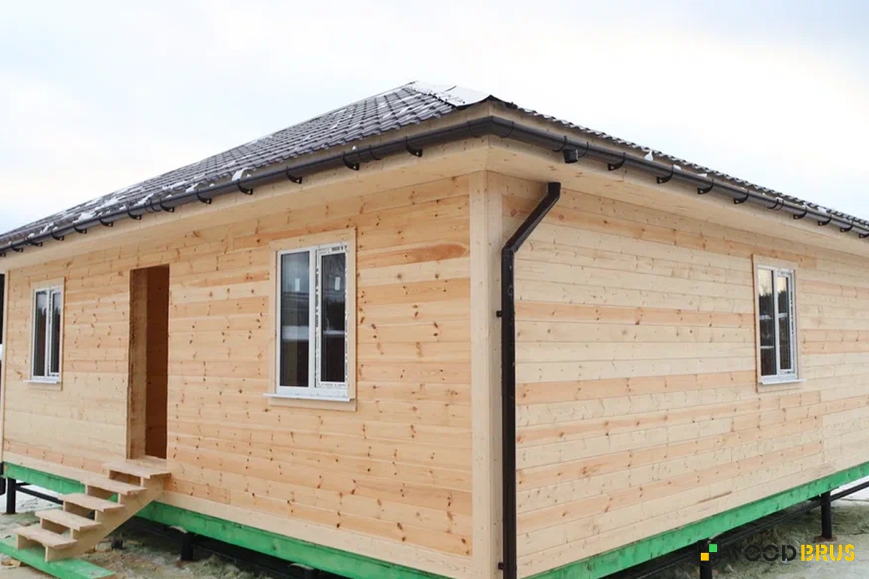 ✔Материалы камерной сушки. Капитальные стены выполнены из обрезной доски 40х150 мм, укосины, перегородки — из доски 40х100 мм, лаги пола — из доски 50х200 мм. Утепление пола и потолка — плитным Rockwool в 200 мм, перегородок — плитным Rockwool в 100 мм. Высота потолка 2.60 м. Проведено антисептирование брусовой обвязки, лаг пола и черного пола. С внешней стороны дом обшит имитацией бруса.