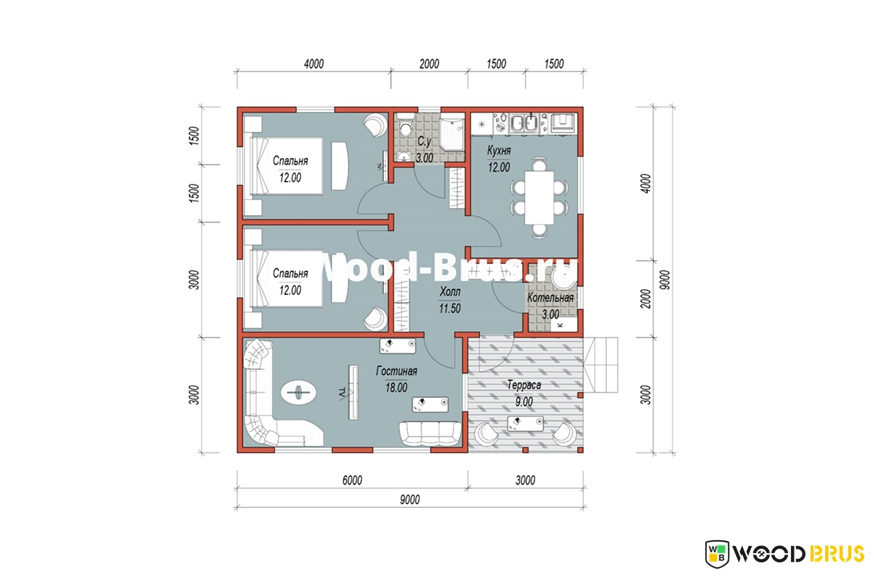 Каркасный дом 9х9 по проекту "Калининград"